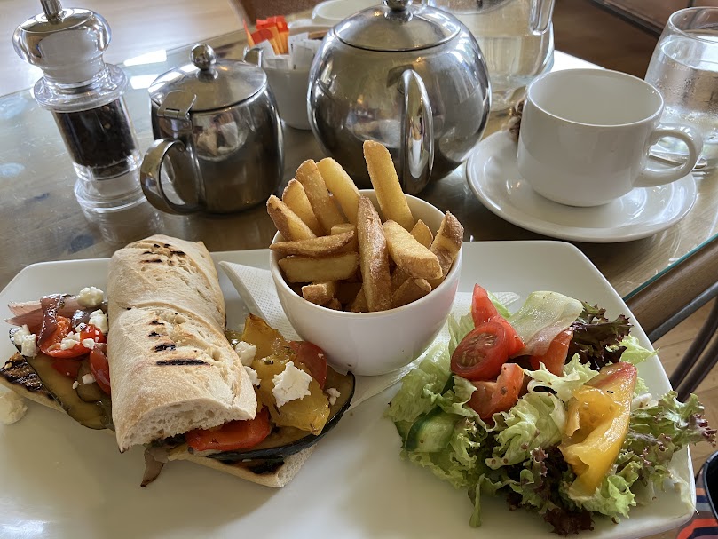 Lorna went for the grilled vegetables sandwich, which was also served with chips and salad. She gave her sandwich 10/10, and we both agreed that the meal was perfect.