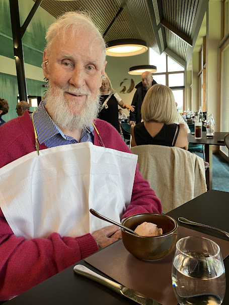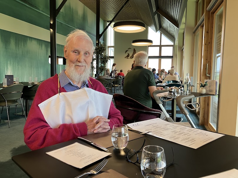 Certain areas of interest and appreciation are opening up in my 90s that I had never anticipated, and these seem to be giving me a new zest for life. One of these is a love of colour. Lorna takes responsibility for purchasing my clothing these days, but I very much share her enthusiasm for dressing me in colourful clothes. My wardrobe now contains an array of colours I would never have thought of wearing in my younger years.