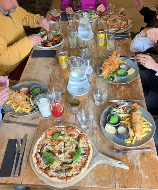 Three of us had fish and chips, with Flora and myself having small portions and Sam having a large one. Lorna and James had pizzas, Donald had a pork dish, and Gail had cod. I think we all enjoyed our meals, I certainly enjoyed my small fish and chips, although it didn’t seem very small to me.