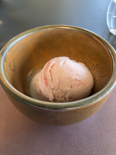 Our main courses had filled us up nicely but we felt we had room for something small and sweet, and both ordered one scoop of strawberry ice cream, which came all alone in a brown bowl.