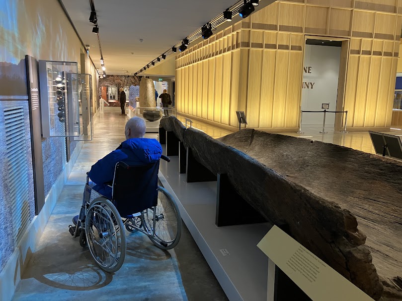 Neither of us wanted anything else to eat, and we were keen to see the museum. I was feeling quite tired and wasn’t sure if I had the energy for walking around, but we decided to have a quick look and see what the space was like. At the entrance, Lorna spotted a couple of wheelchairs, and asked if we could borrow one. A helpful member of staff assisted us in unfolding it, and I sat myself down. My rollator was stored safely behind the reception counter while Lorna wheeled me off to look at the exhibits.