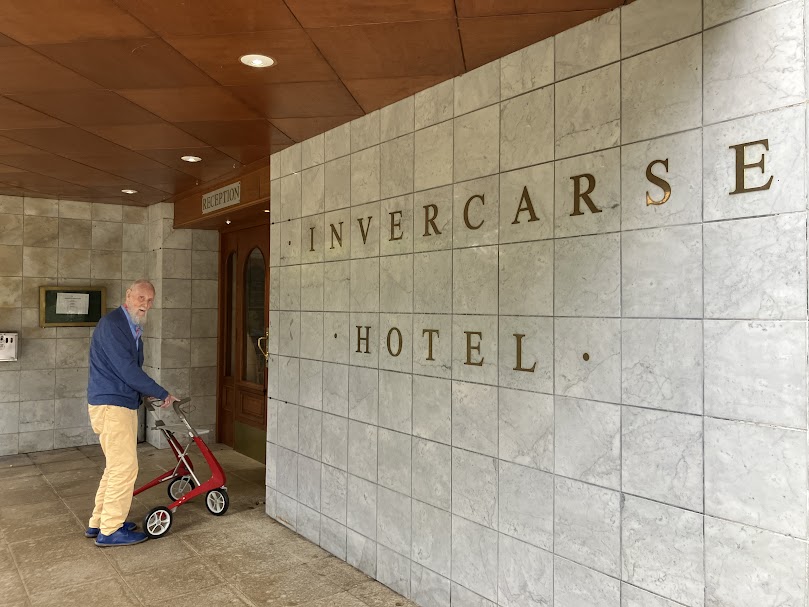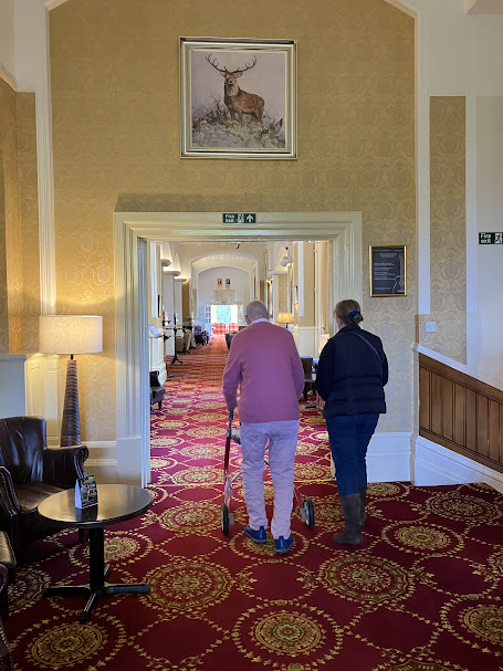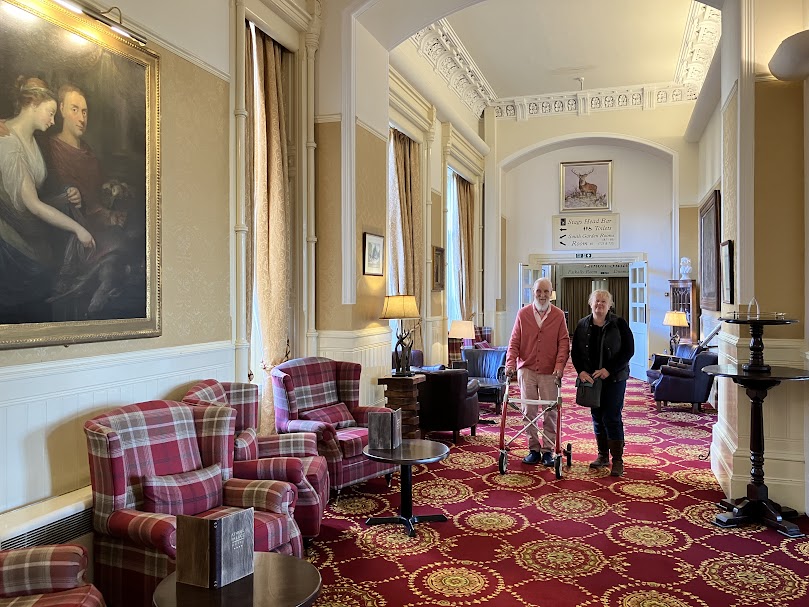 A few days ago, Lorna and I set off in beautiful, sunny autumn weather to meet my other daughter, Flora, for lunch at the Atholl Palace Hotel in Pitlochry. Lorna was able to park in a handy disabled bay, and Flora and I paused for a photo outside the grand entrance.