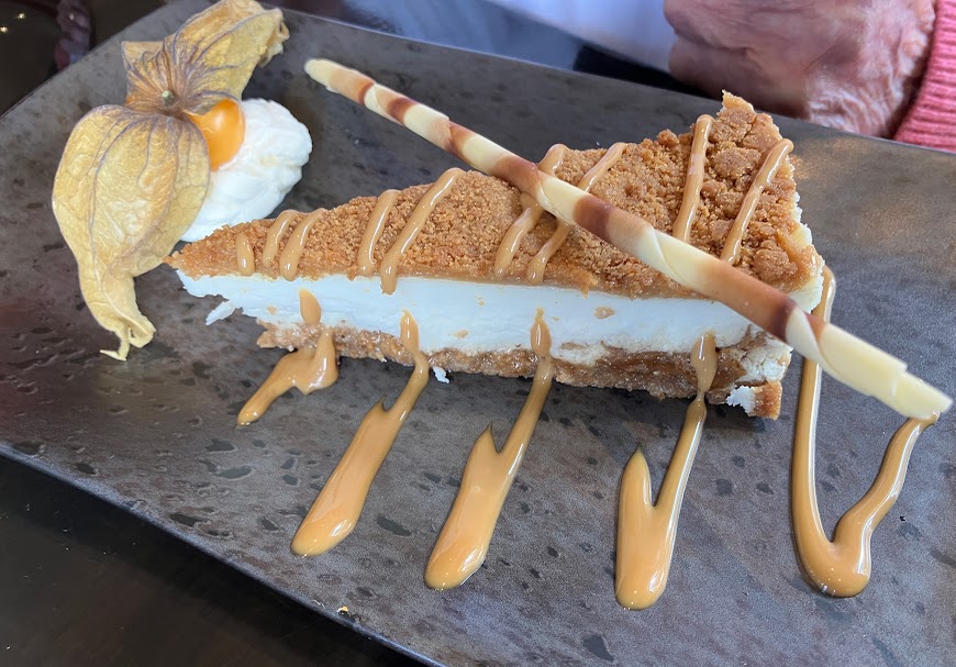 Lorna couldn’t resist trying the hot Cape brandy pudding, which she described as a cross between sticky toffee pudding and Christmas pudding. It was served with creme fraiche ice cream, and doused in brandy.