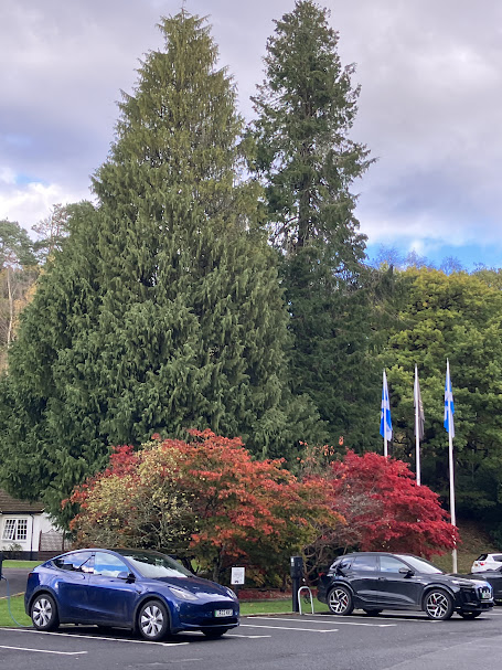 We enjoyed sitting in the lounge bar, with the background buzz of other diners in a warm, comfortable environment. After polishing off our meals, we decided against having anything further, and decided to push on to House of Bruar, where we would have hot drinks and a snack. Lorna forgot to take any photos at Bruar, but she did take a couple in Dunkeld House Hotel grounds as we were leaving.