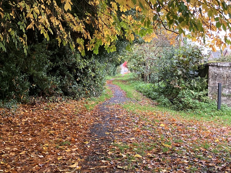 On returning home, after tucking me into bed for an afternoon nap, Lorna popped out for a walk and enjoyed some autumn leaves still on trees, and carpeting the ground.