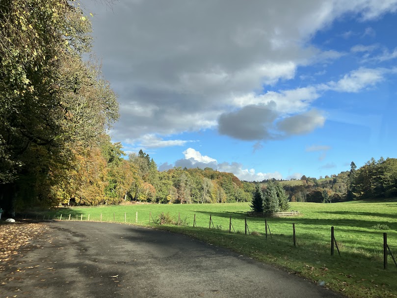 One of the delights of Dunkeld House Hotel is the long private driveway leading from the main road to the hotel. It’s a mile long and has numerous gentle humps to keep traffic at low speeds. It’s almost entirely single track with passing places, and every time we go up or down it we pass other vehicles travelling in the opposite direction. The little waves we exchange with fellow drivers, and the leisurely pace of the drive, make coming and going along the driveway a special part of any visit to the hotel.