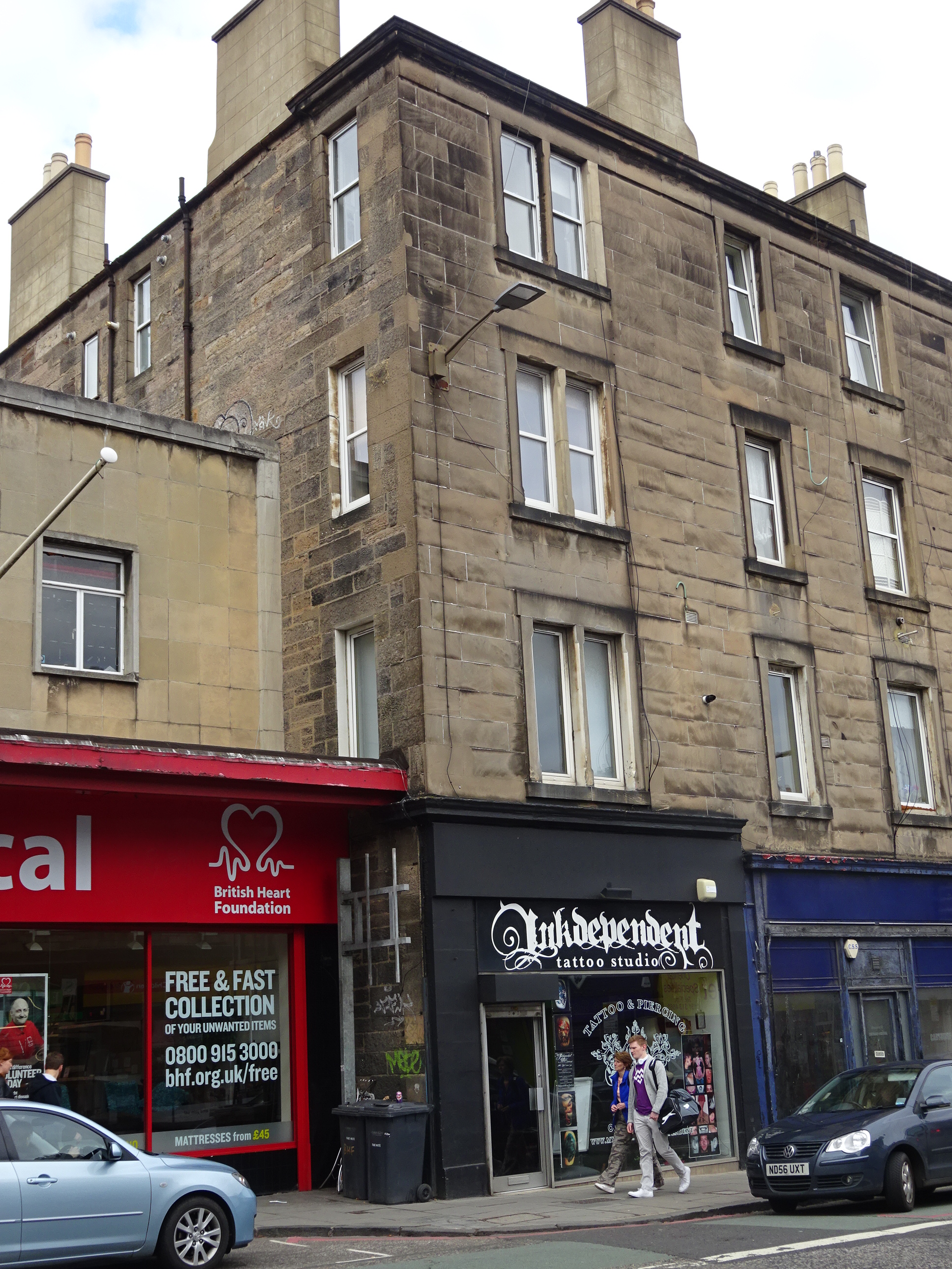 Here is a photograph of that flat. It has two windows looking out to Dalry Road below, three windows looking west, and another four windows (not visible in this shot) looking north.